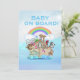 O Bebê de Arca de Noah convida com um fundo de água e o barco de Noah. Use nosso modelo fácil para personalizar com seus dados.rabiscos deliciosos