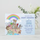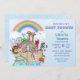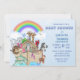 Alegre a mãe por estar com este convite de chá de fraldas de arca azul do Noah. A cor azul é perfeita para meninos. O gráfico colorido tem o barco com todos os animais olhando. Há duas por duas, girafas, elefantes, zebras e animais mais adoráveis. Há um arco-íris e nuvens no topo, e peixes nadando no fundo. Altere o estilo para lhe servir, o retângulo é apenas uma das opções. Celebrar o próximo nascimento com estes convites temáticos cristãos.