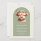 Este convite para o chá de fraldas tem uma adorável vaca em terras altas com coroa floral em um bonito arco verde sábio. O fundo é um papel de aquarela falso creme que realmente faz o design pop. Veja a coordenação de itens no nosso compro, Encantado Finch.