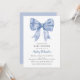 Celebre em estilo com nosso elegante Convite ao Chá de fraldas Azul, perfeito para um tema charmoso do Chá de fraldas Coquette. Com um delicado design de arco, este convite é totalmente personalizável e fácil de solicitar. Ideal para dar um tom sofisticado e doce ao seu chá de fraldas, este Convite para Chás de fraldas Coquette de alta qualidade deixará uma impressão duradoura nos seus convidados.