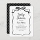Este design de chá de fraldas preto e branco chic apresenta uma fita, arco e design.