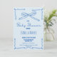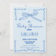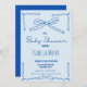 Um convite para chá de fraldas azul empoeirado desenhado à mão e escrito à mão, seguindo a última tendência no papel de carta chá de fraldas.