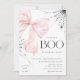 Este chá de fraldas bonito e assustador apresenta uma bela ilustração aquarela de um arco rosa e teia aranha, perfeita para celebrar a chegada de um pequeno na época das bruxas.