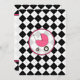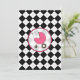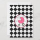 Um convite com um fundo de estilo preto e branco com um fundo cor-de-rosa quente. Personalize o texto das fontes preto e rosa com detalhes do evento. O lado oposto é o argyle sólido com uma carruagem de bebê rosa quente dentro de uma estrutura em forma de círculo correspondente.