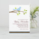 Um pássaro azul bonito para um chá de fraldas! As listras e bolinhas clássicas adoram este convite para chás azul claro e castanho.