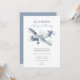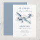 Para cima e para fora! Um bebê está a caminho! Planejar um chá de fraldas de avião? Nossos convites para bebês de avião são a maneira perfeita de celebrar o novo bebê no caminho com um chá de fraldas temido de viagens vintage. Perfeito para um chá de fraldas para um garoto, esses convites para chás de fraldas de avião azul são a escolha perfeita. O chá de fraldas do avião HOWARD convidado para design apresenta um fundo branco com nuvens brancas fluffy e um plano de proteção da safra azul, emparelhado com um bebê para cima, para cima e para fora, está a caminho escrito em um belo roteiro manuscrito e um par de fontes ousadas sans serif em azul-poeirento, e os outros detalhes importantes do chá em uma cinza serif moderna para acrescentar interesse visual ao seu convite para o chá de fraldas do avião da vintage. Personalize este convite para chá de fraldas de avião azul adicionando nomes, data, hora, local e outros detalhes.