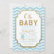 Convite Para Chá de fraldas De Azul E Dourado Che