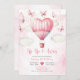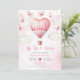 Convite para Chá de fraldas de balão de ar quente, cor-de-rosa, Balões de ar quente, primeiro aniversario de convite para o aniversário