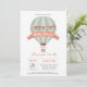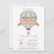 Convite Para Chá de fraldas De Balões De Ar Quente.Viagem. Para Cima e Para Fora. Chá de fraldas de Menina ou Menina Convidam. Fundo Retroativo Vintage. Púrpura Amarela Azul-Rosa Azul-Azul-Azul-Azul.