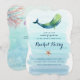 Uma baleia de aquarelas convida a completar com um peixe-estrela contra fundo azul-humano
