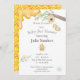 Um convite para chás de fraldas bonito com pequenas abelhas.
