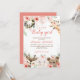 Personalize este incrível chá de fraldas da menina da floresta Woodland Convidando com seus detalhes fácil e rapidamente. Esta é uma adorável disposição das folhas Greenery e dos amigos Woodland com rosa rosa floral.
