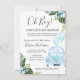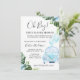 Um convite para chás de fraldas de bebê com tema de distanciamento social ou quarentena é feito com um carro azul, balões, flores e folhagem tropical. Excelente de um rapaz dirigir por um chá de fraldas de desfile e um convite para a quarentena.