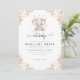 Este convite para chás de fraldas apresenta um elefante pintado com aquarela e flores com aquarela. O "Oh baby" está em uma bela fonte de script e seus detalhes de chá estão em uma tipografia de na moda, pronta para ser personalizada. Estas cartas invertem para uma cor rosa bebê. Um design branco perfeito para chá ou borrifo.