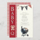 Hospede um chá de fraldas memorável de casais com este encantador convite temático 'Baby Q'. Apresentando um padrão vibrante de gingham vermelho e branco, este design captura a essência de uma celebração de churrasco no quintal. A ilustração da peça central inclui uma grelhadora de churrasco ao estilo da vintage, pronta para disparar, ao lado de um doce chamariz de bebê no mesmo clássico impressão de gingham. É uma maneira encantadora e única de anunciar sua celebração e convidar pessoas amadas a compartilhar a alegria. Perfeito para uma reunião relaxada e divertida, este convite garante que seus convidados se sintam bem-vindos e animados para o evento.