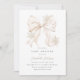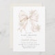 Mínimo convite para chá de fraldas coquetel que apresenta um arco bege elegante e flocos de neve, perfeito para o inverno.