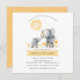 Este encantador convite para o chá de fraldas elefante apresenta um doce design com flores amarelas, perfeito para celebrar a chegada de um novo bebê. O adorável motivo elefante acrescenta um toque caprichoso ao convite, fazer-o uma escolha encantadora para uma celebração de chá de fraldas. A paleta de cor suave e os sotaques florais criam uma sensação quente e convidativa, definindo o tom de um evento especial para acolher o pequeno. Ideal para aqueles que procuram uma opção de convite bonitinha e neutra em termos de gênero, este convite para o chá de fraldas de elefantes com flores amarelas certamente impressiona os convidados e estabelece o palco para uma celebração memorável.