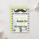 Celebre o nascimento iminente do seu homenzinho com este adorável convite de chá de fraldas com listras castanhas, azuis e verdes e um bigode marrom na moda.