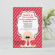 Esperando um bebê? Este é um convite para chás de fraldas adorável. Ele tem um fundo vermelho escuro e mais claro, listrado na diagonal. Há uma marca branca no centro deste convite onde você adiciona suas informações de partido para personalizá-las. No fundo do centro está este adorável bebê vestindo uma gravata vermelha com pequenas bolinhas brancas. Ele está vestindo uma fralda sentada com as pernas separadas e os braços estendidos. O bebê tem um bigode escuro! Veja nossas outras cores e designs em nossa loja. ©JW