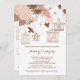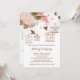 Convite para chás de fraldas de trigo, com gaiolas e flores cor-de-rosa e castanha. Outras cores estão disponíveis.