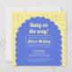 Celebre a chegada iminente do seu pequeno com este belo convite para chás de fraldas, com um padrão de bloco de hipnórdica suave em calmantes amarelos e azuis. As flores inspiradas na aquarela criam um cenário doce e eterno, perfeito para uma celebração neutra em termos de gênero. Com seu charme de jardim fresco e paleta de cores gentis, este convite dá o tom para um encontro quente e alegre com familiares e amigos.
