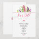 Bonito penas cor-de-rosa e folhagem verde com um script de efeito de aquarela rosa para anunciar 'É uma menina!'. Perfeito para celebrar bebês de primavera. As cores, estilos e tamanho do texto podem ser personalizados neste design. Os convites e as placas estão disponíveis em uma seleção de texturas e formas de papel (borda arredondada, redimensionada etc.) Você pode encontrar outros designs com muitos produtos de coordenação na loja, incluindo convites, salvar a data e as placas rsvp, obrigado que você marcar e muito mais.