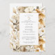 Cor da água da terra russa com convite para tema de chá de fraldas pintado de flores silvestres, com uma camada branca e padrão de flor silvestre. O quadro contém seu texto de convite, com flores silvestres brancas e ferrugem e um tipo de script moderno.