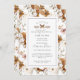 Embarque a beleza da natureza e a alegria dos novos começos com o nosso convite temático de chá de fraldas de flor silvestre pintada, com flores terracotta e folhas verdes, com uma cobertura de moldura branca e padrão de flor silvestre em fundo branco. O quadro contém seu texto de convite, com matizes de outono e bonito tipo de script moderno.
