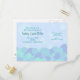 Este convite para o chá de fraldas tem um design moderno que usa aglomerados de bolhas em tons de azul para mostrar o lado divertido e lúdico dos chás de fraldas.
