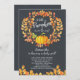 Moderno Um pouco de abóbora está no caminho o convite para o chá de fraldas com uma bela coroa de folhas de outono com uma abóbora laranja colocada sobre um popular fundo negro de quadro negro. Perfeito para um chá de fraldas de meninas, chá de fraldas de meninos ou um chá de fraldas neutro em gênero.