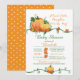 Chá de fraldas Neutral de Abóbora Bonita e Doce, com dois abóboros adornados com folhas, vinhas verdes e tipografia. Sacudir nosso chá de fraldas de ervilha precioso sobre o convite para ver um plano de fundo de bolinhas laranja para um toque especial extra. Chá de fraldas moderno para um chá de fraldas de outono para um bebê, uma menina ou um chá de fraldas neutro em relação ao gênero.