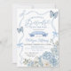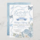 Concurso para Chá de fraldas de Borboleta Floral Azul Dusty, Convite para Chá de fraldas de Arco Floral Azul, Nossa Pequena Borboleta Está No Caminho Convite, Coquette Dusty Blue Butterfly Chá de fraldas Convite