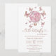 Uma pequena borboleta está no caminho do convite para chás de fraldas florais cor-de-rosa