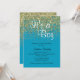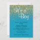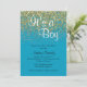 Bonito convite para chá de bebê borrifador azul e dourado.