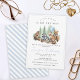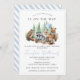 Um simples minimalista da Floresta Woodland de cor azul-aquática convite para o chá do bebê menino. Um pouco selvagem está a caminho do chá de fraldas.