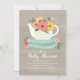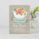 Convites de chá de panela impressos com beleza com uma ilustração floral do bule. Veja a loja de Impressões Origami para mais Convites de chá de panela!