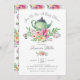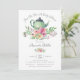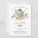 Bonito convite para chás de fraldas, com flores pintadas manualmente a aquarela com um bule verde. Sacudir o nosso convite para ver uma floral coordenada de volta para um toque especial extra.