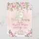 Flores de aquarela elegantes e bule de chá clássico. Esses convites florais para chuveiros de bebês são facilmente personalizados para seu evento simplesmente adicionando seus detalhes.
