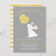 Está procurando um convite para chá de fraldas de coelhinho? Este design apresenta um falso título de caligrafia em ouro, um coelho e um balão de aquarela amarela. O fundo é cinza e o fundo do convite é um padrão listrado de aquarela esbranquiçada e amarela. O cabeçalho falso da caligrafia em ouro não pode ser alterado, mas todos os outros textos podem ser editados. Este convite para chás de fraldas de coelho está pronto para ser personalizado.