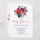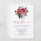 Modelo de convite de festas de chá de fraldas Floral com um belo rosa de pénia, buquê de vermelho, burgundy, rosa-blush, magenta, marinho azul e violeta-roxa, flores boêmicas, penas e folhagem com um rico moderno e comutável texto de roteiro. — O convite é ideal para o primavera boêmico ou chá floral floral ao ar livre/quintal elegante de garçonete.