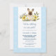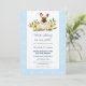 Quem não ama cachorros e bebês? Este convite para chás de fraldas de cães é uma escolha excelente para amantes de cães. No topo do convite, um buldogue francês rodeado por florais coloridos sorri para você. Abaixo do desenho do cão, a legenda "Estamos a adicionar ao nosso grupo!" anuncia a divertida ocasião para os vossos convidados. Uma bela borda azul com pegadas brancas e pés de bebês cercam o texto. Celebre a vinda do seu filho novo com este convite de chá de fraldas fofo e fofo.