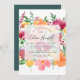 O convite elegante e moderno para chás de fraldas florais apresenta um fundo de flores de papoila de cor aquosa vibrante e folhas verdes. Os detalhes do seu chá de fraldas estão sobrepostos em um elemento branco puro em letras escura e escura elegantes acentuadas com caligrafia de estilo manuscrito.