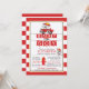 Convite para chás de fraldas moderno e fofo com um caminhão de incêndio vermelho com um cachorro dalmata doce colocado em fundo vermelho e branco com sotaque hidrante. Sacudir o nosso convite para ver um toque especial adicional. Convidado perfeito para um bombeiro/carrinho de incêndio convite para chá de fraldas temático