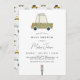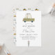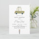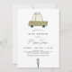 Convite para chá de fraldas de carro em estilo minimalista com um carro verde e um padrão de carros atrás. Você pode personalizar este convite com seus próprios detalhes na seção "Personalizar este modelo".
