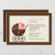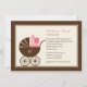 Seja apresentadora de um chá na moda para uma mãe especial com este adorável convite de chás de fraldas com um adorável cheio de carruagem de presentes. Também disponível em azul.