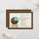 Seja apresentadora de um chá na moda para uma mãe especial com este adorável convite de chás de fraldas com um adorável cheio de carruagem de presentes. Também disponível em rosa.