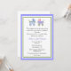 O convite para o chá de fraldas do Na moda é feito em um branco, com gráficos bonito de um bebê azul, um bebê azul, e uma carruagem de bebê rosa e lavanda, decorando o topo. Bonito quadros azul e verde do periwinkle ao redor da parte externa da placa, com texto preto e azul. O texto está pronto para personalizar, para atender às suas necessidades de evento de bebê. Encantador convite aos pais para serem queridos.