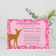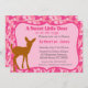 Um chá de fraldas de veados moderno com um adorável veado marrom a rosa. Fundo colorido de camuflagem rosa. Adicione os detalhes da sua festa.