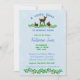 Chá de fraldas de veados modernos com um adorável veado marrom, esquilo e coelho. Perfeito para aquele bebê bonitinho chegar logo. Design tem flores e folhas verdes e um fundo de faixa azul' Adicione seus detalhes de festa usando nosso modelo fácil.