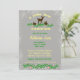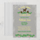O chá de fraldas de veados moderno neutro com um adorável veado marrom, esquilo e coelho. Perfeito para aquele menino ou menina bonitinho chegando logo. Design tem flores e folhas verdes e um fundo de faixa de cinza' Adicione seus detalhes de festa usando nosso modelo fácil.